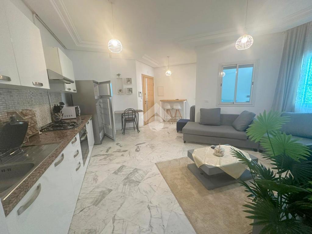 Situé au premier étage d’une résidence calme et sécurisée, cet appartement richement meublé offre un cadre de vie confortable et fonctionnel. L’entrée s’ouvre sur un salon lumineux, aménagé avec un coin salon et une salle à manger. La kitchenette, ouverte sur le salon, est entièrement équipée d’une plaque de cuisson, d’un four électrique, d’une hotte aspirante, d’un micro-onde, d’un réfrigérateur ainsi que d’une machine à laver. Elle est complétée par un séchoir. La partie nuit se compose d’une chambre à coucher équipée d’un dressing encastré. Une salle de bain avec baignoire vient de compléter cet espace. Cet appartement est équipé d’un système de climatisation split et du chauffage central.