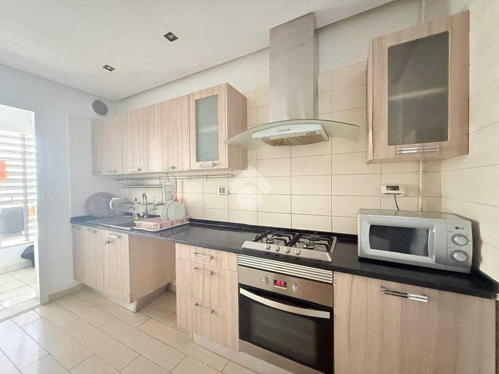 La cuisine est entièrement équipée (plaque de cuisson, four, réfrigérateur, hotte et micro-ondes).