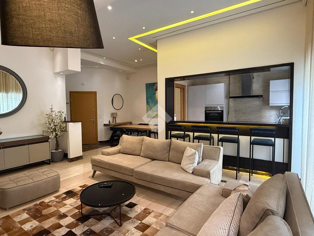 Il se compose d’un salon avec espace salle à manger, d’une cuisine ouverte bien aménagée (plaque de cuisson, four, micro-ondes, hotte), d’une chambre à coucher confortable avec un balcon et d’une salle de douche moderne.