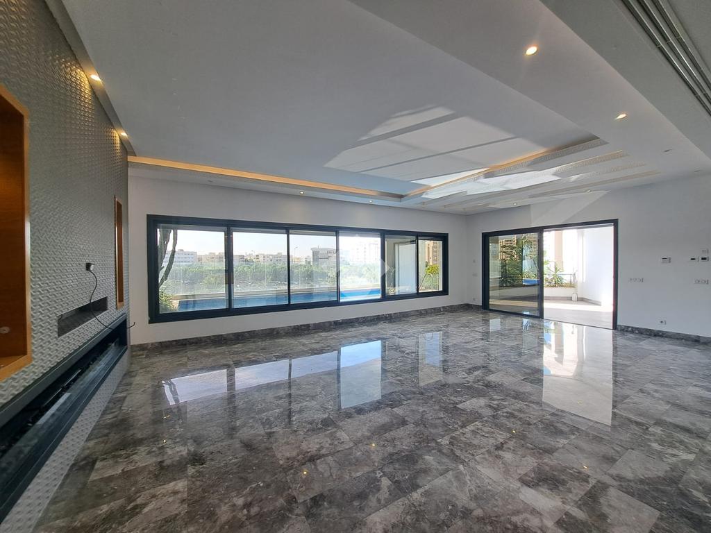 Situé dans une résidence prestigieuse et sécurisée aux Berges du Lac 2, ce penthouse est un véritable écrin de confort et de raffinement. Dès l’entrée, un vaste espace de vie lumineux vous accueille, baigné de lumière naturelle grâce à ses larges baies vitrées qui s’ouvrent sur une terrasse généreuse offrant une vue dégagée sur la piscine – un cadre idéal pour la détente. La cuisine moderne et fonctionnelle est entièrement équipée : plaque de cuisson, hotte, four, micro-ondes et lave-vaisselle. Un séchoir pratique vient compléter cet espace, parfait pour vos besoins quotidiens. Une chambre de service a également été aménagée, et une salle d’eau pour invités complète la partie jour. Le compartiment nuit comprend trois suites, chacune dotée de son dressing et de sa salle de bain avec jacuzzi. L’une des suites bénéficie d’un balcon intime, créant ainsi un environnement calme et privilégié. Ce penthouse dispose également d’un chauffage central d’une climatisation centrale et jouit d’une cheminée à l’éthanol afin d’assurer une température agréable en toutes saisons. Deux places de parking privé ainsi qu’un cellier sont disponibles au sous-sol.