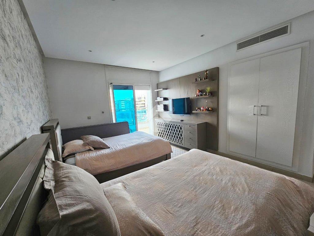 Cet appartement est situé dans une résidence sécurisée et bien gardée, au cœur du quartier du Lac 2, à proximité du Tunisia Mall. L’espace jour se compose d’un salon lumineux bénéficiant de grandes ouvertures donnant sur la terrasse et la piscine, idéal pour profiter de la vue et de la lumière naturelle. La cuisine entièrement équipée (plaque, hotte, four) est fonctionnelle et dispose d’un séchoir attenant. Une salle d’eau pour les invités complète cette partie. La partie nuit abrite trois chambres à coucher, dont une suite parentale avec sa propre salle de bain. Les deux autres chambres se partagent une salle de bain commune, offrant confort et intimité à chacun. Une place de parking privative au sous-sol est également incluse. Cet appartement allie emplacement stratégique, confort moderne et cadre de vie paisible, faisant de lui une opportunité idéale pour une résidence principale ou un investissement locatif.