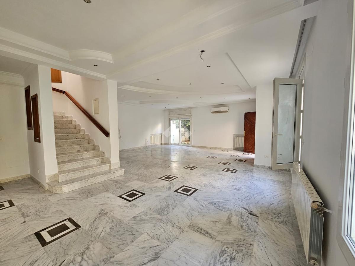 Située dans un quartier résidentiel, cette villa est bâtie sur un terrain de 400 m² et répartie sur deux niveaux. Elle bénéficie d’un jardin agréable ainsi que d’une terrasse. Au rez-de-chaussée, vous découvrirez un double salon lumineux avec accès direct au jardin, ainsi qu’une cuisine entièrement équipée, comprenant un four encastré et une plaque de cuisson. Ce niveau comprend également une chambre avec accès au jardin, pouvant également servir de séjour, ainsi qu’un point d’eau destiné aux invités. L’étage est dédié à l’espace nuit et se compose de trois chambres à coucher, chacune avec son dressing, dont une suite parentale avec salle de bain privative. Une seconde salle de bain a également été aménagée pour desservir les autres chambres. La villa est équipée d’un système de chauffage central et de climatiseurs de type split. Deux places de stationnement sont disponibles pour les futurs locataires.